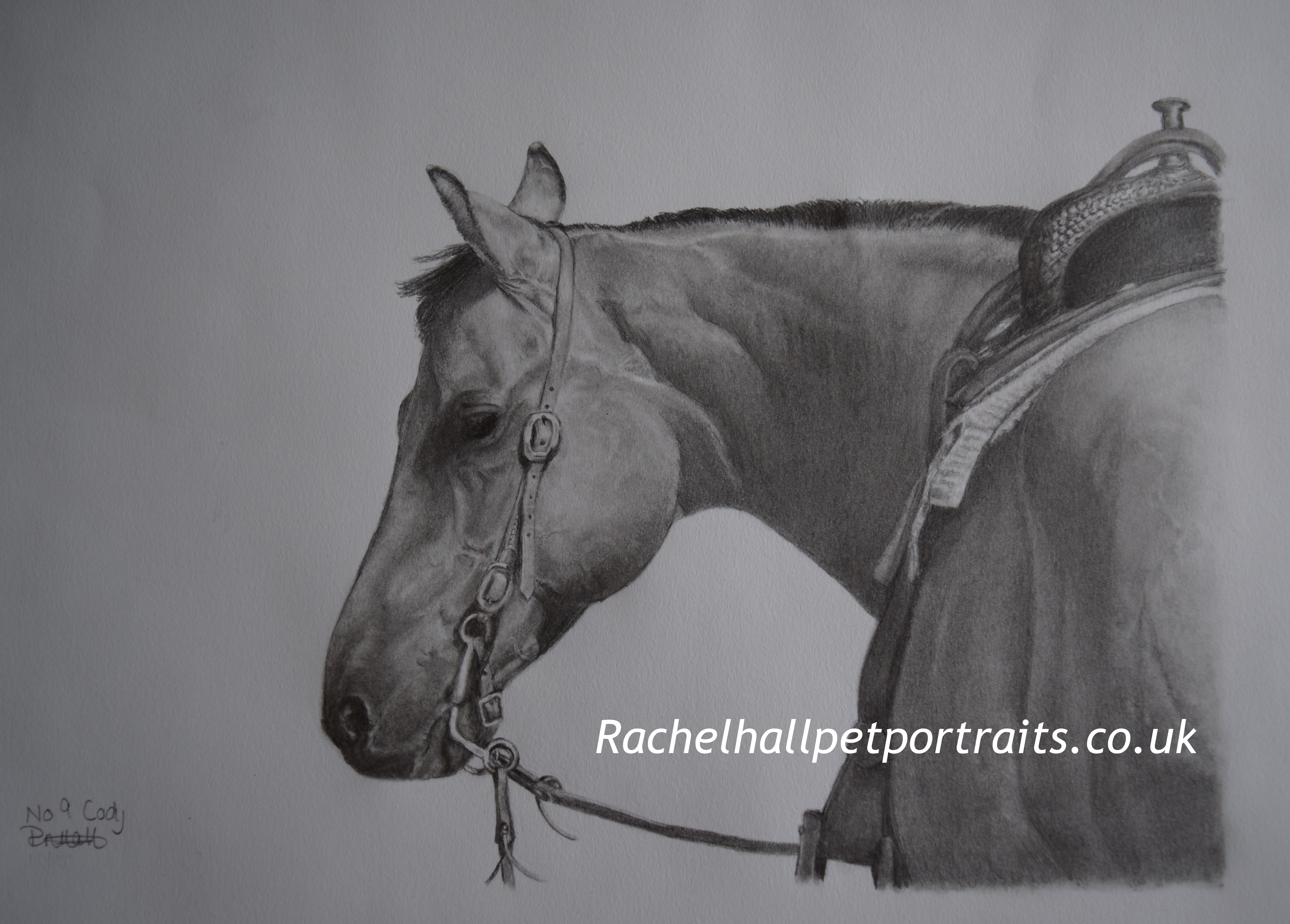 I was asked by Rachel Hall if she could draw my horse Cody for an exhibition, to which I jumped at the chance as I had previously seen some of Rachel’s work, I felt quite honoured.