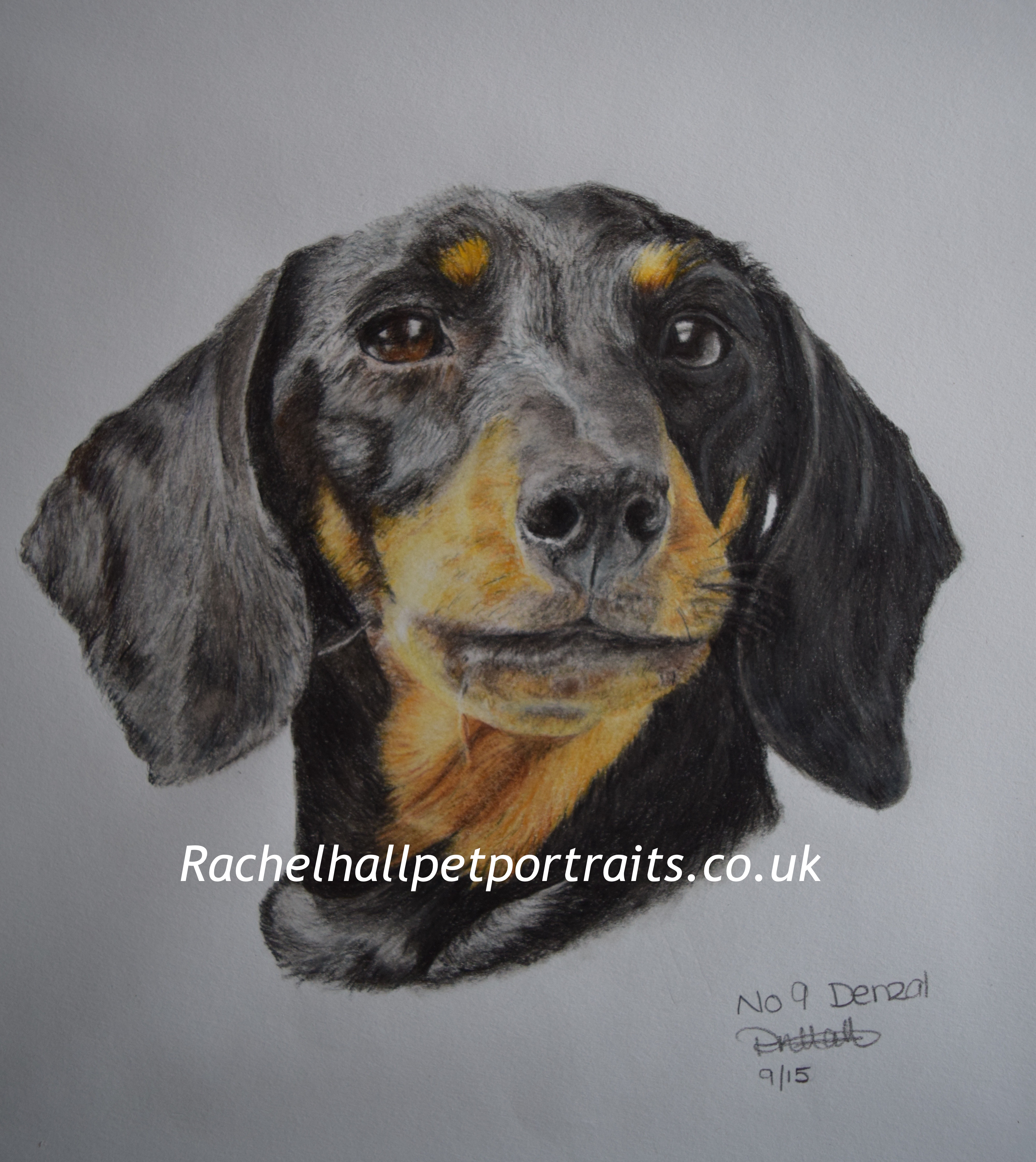 A massive Thank You Rachel for the beautifully detailed colour pencil drawing of our miniature dachshund Denzal. You have captured his personality completely. We have been showing the portrait to our family and friends – they cannot believe the stunning quality and life-like detail of your work. I would have no hesitation in recommending your service to any animal owner. Thank you again. Sue, Steve, Amy and Sam Ruscillo
